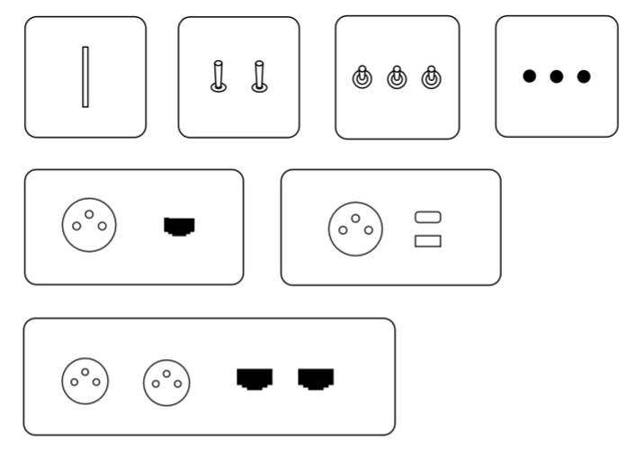 A gama de interruptores e tomadas EQUILIBRE oferece total liberdade de composição, permitindo combinar todas as formas, todos os tipos de ligações e funcionalidades disponíveis.